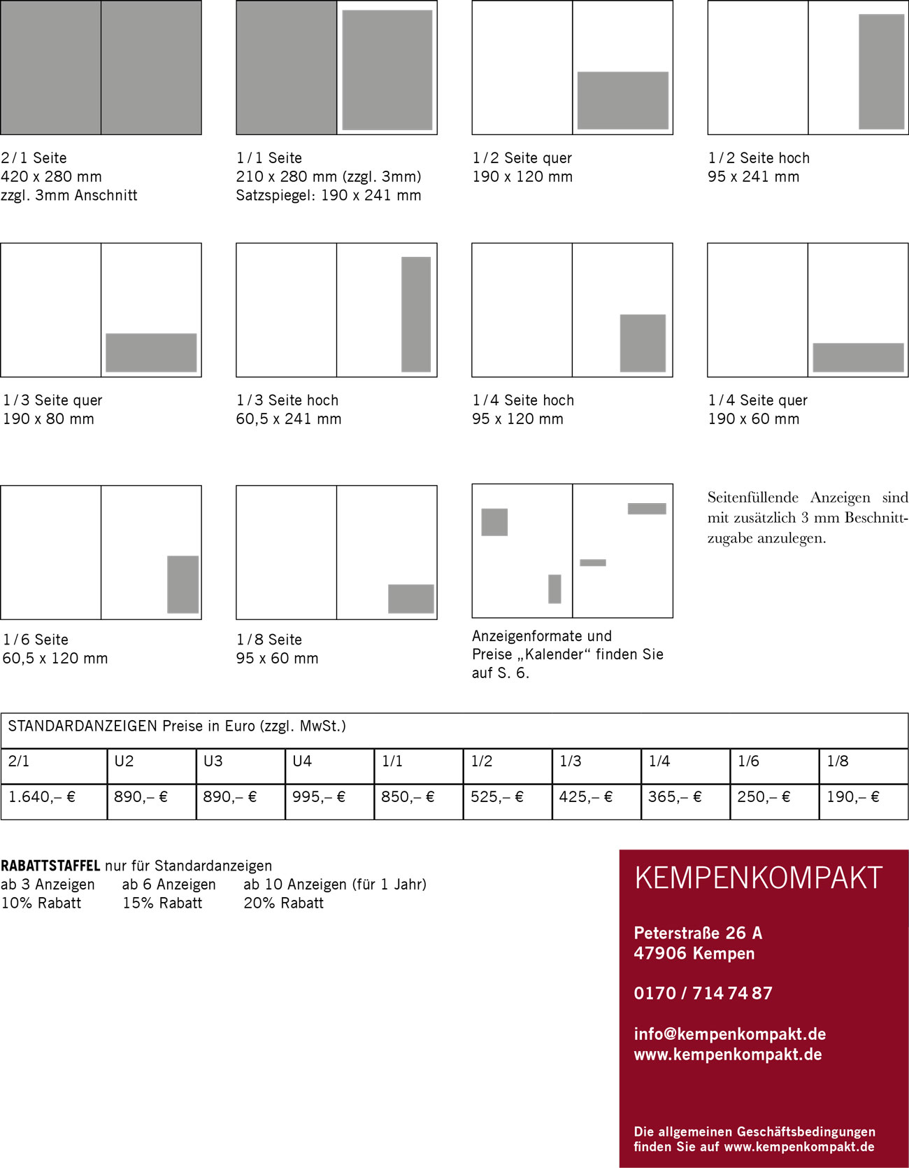 Natürlich kann das Advertorial nicht die traditionelle Anzeige mit ihrer klaren, knappen Botschaft ersetzen. Aber in vielen Fällen ist das Advertorial durchaus eine sinnvolle Ergänzung oder sogar „die schlaue Alternative“ zur klassischen Anzeige. Sprechen Sie uns darauf an – KempenKompakt berät Sie gern. Und nimmt in Absprache mit seinem Kunden von der Konzeption über die Gestaltung bis zur Abnahme der Seite alle Arbeiten in seine kompetenten Hände.