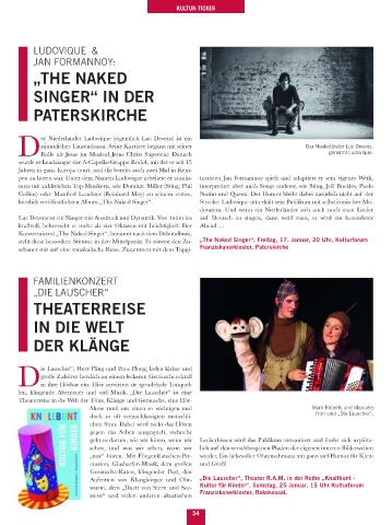 stellt diese besondere Stimme in den Mittelpunkt. Er nimmt den Zu- „The Naked Singer“, Freitag, 17. Januar, 20 Uhr, Kulturforum